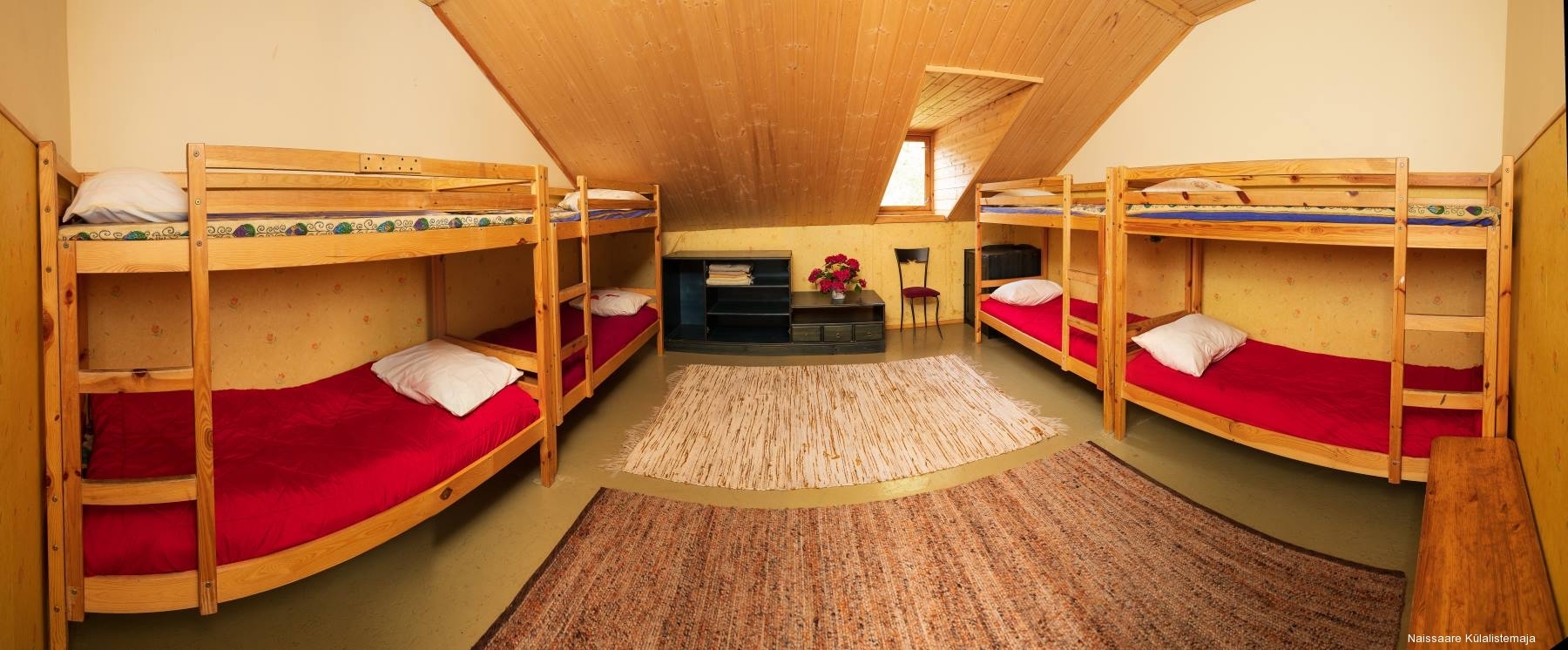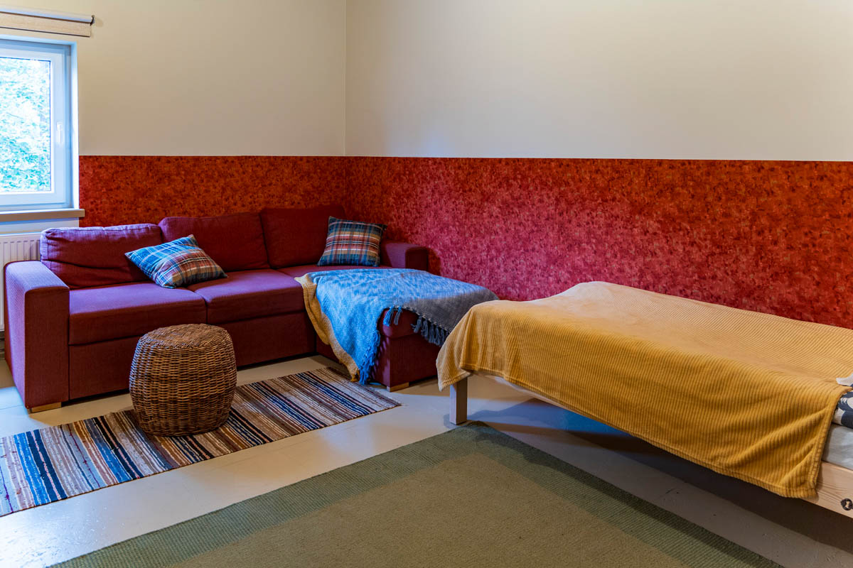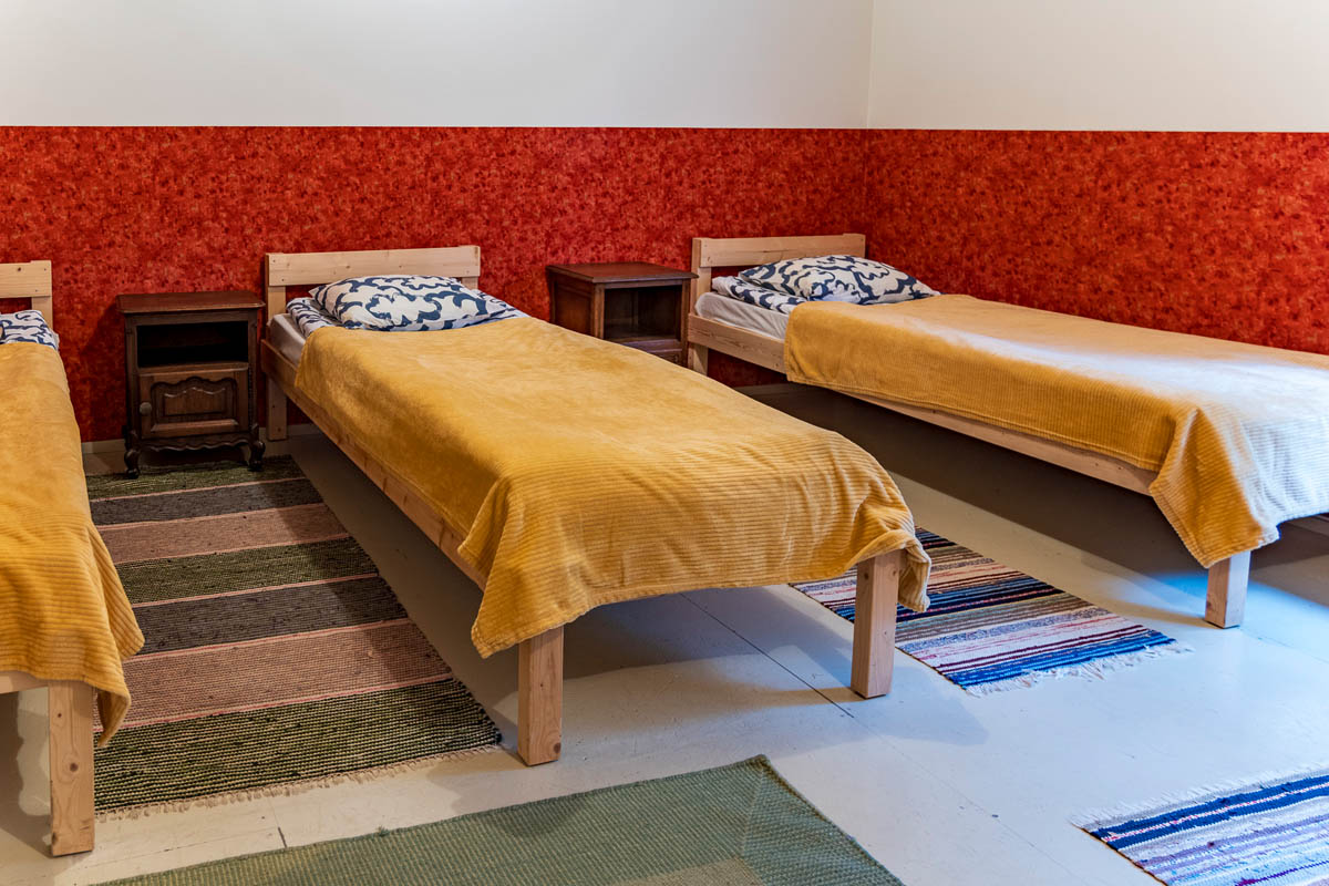 Viereinen talomme tarjoaa viihtyisää ja käytännöllistä majoitusta. Talossa on kaksi kerrosta, joihin mahtuu mukavasti jopa 100 henkilöä. Jokainen huone on huolellisesti kalustettu takaamaan miellyttävän ja mukavan yöpymiskokemuksen vieraille. Modernit kalusteemme luovat lämpimän ja kutsuvan ilmapiirin, jossa on helppo rentoutua ja toipua päivän toiminnasta. Huoneiden lisäksi alakerrassa on myös pyykinpesumahdollisuus.